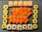 2. Калифорния (снежный краб., имм., огурец. Обсыпан икрой Тобико или Масаго), 8шт.;