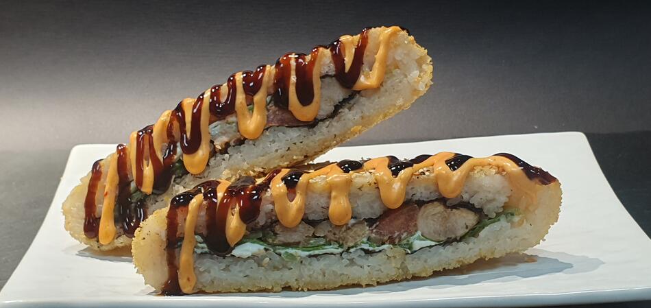 Сэндвич с курицей 230 руб. Кол-во: в корзину 230 x 1 = 230 руб. курица, сыр, лист салата, огурец помидор., соус спайси, соус унаги, кунжут.