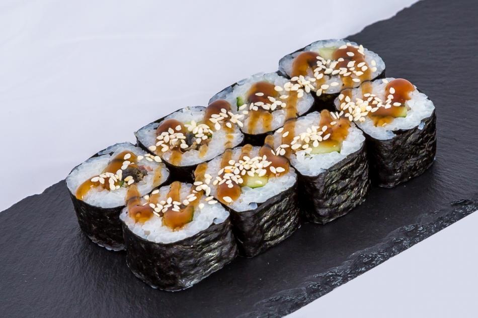 Кани маки 170 гр.-8шт 249 руб. Кол-во: в корзину 249 x 1 = 249 руб. Снежный кра, огурец, рис, нори, соус унаги, кунжут