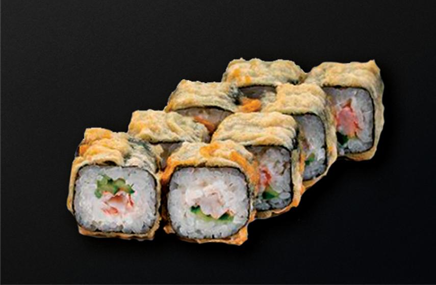 Эби темпура 210гр-8шт 399 руб. Кол-во: в корзину 399 x 1 = 399 руб. Ролл со сливочным сыром,огурцом,королевской креветкой, обжарен в темпуре.