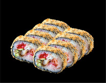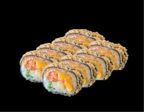Лосось, креветка ,снежный краб, огурец, икра масаго, кляр, темпура, сухари панко.