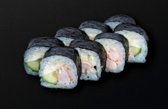 Креветка, огурец ,сыр, рис , нори , икра масаго.